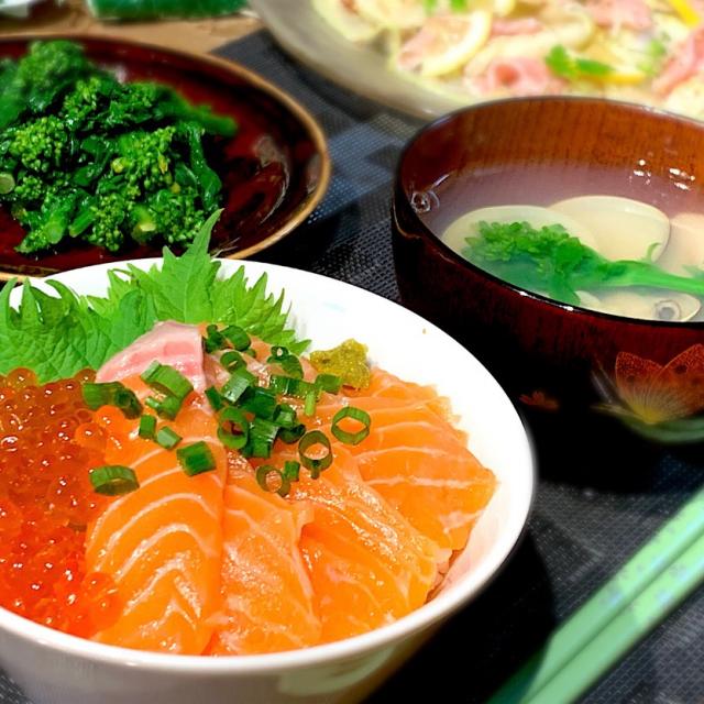 サーモン と いくら の 親子 丼