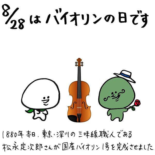大福くん 公式 A Twitter 今日は何の日 8 28はバイオリンの日です バイオリンは弦楽器の一種で バイオリン属の4つの楽器 バイオリン ビオラ チェロ コントラバス の中で最も小さく 最も高音域が出せる楽器なのですよ バイオリンの日