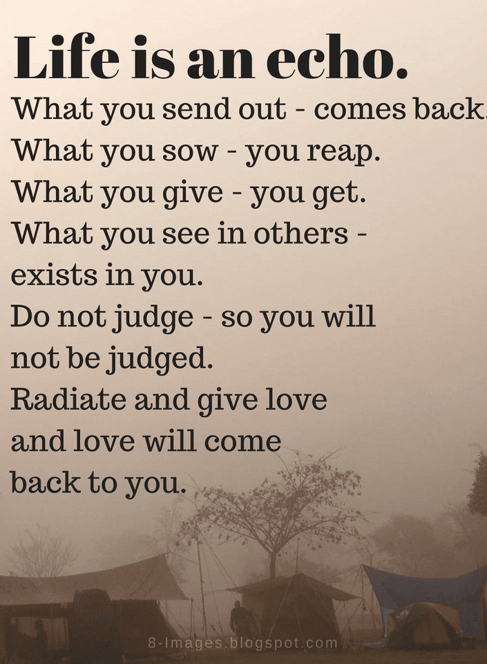 Life Quotes Life Is An Echo What You Send Out Comes Back What You Sow You Reap Quotes