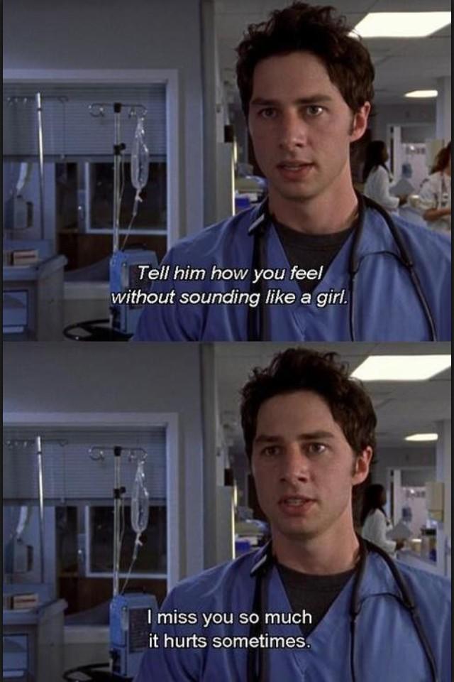 Scrubs Quotes On Twitter Tell Him How You Feel Without Sounding Like A Girl I Miss You So Much It Hurts Sometimes Scrubs Jd Turk Http T Co 5mbqcqsq